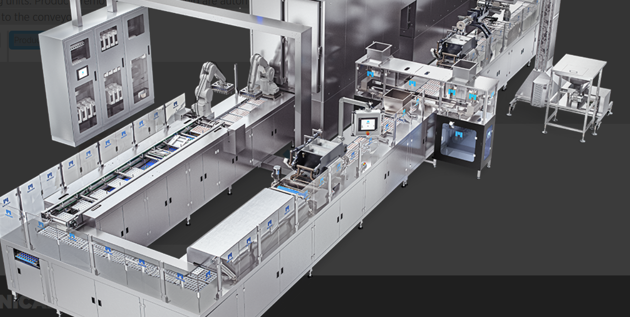 The Automatic Chocolate Molding Line can produce solid chocolate, filled chocolate, double-colored chocolate, solid chocolate or filled chocolate with 2-4 mm brittle particles such as almonds, walnuts, hazelnuts, peanuts, and sesame seeds, and all hazelnut-filled chocolates. The line features its own cooling tunnel and automatic demoulding units. Products removed from the mould are automatically transferred to the conveyor for packaging.